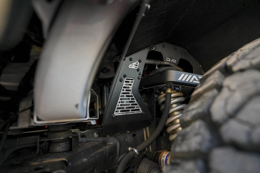 They can even clear 37-inch tires with a 2.5 to 3-inch lift. Our inner fenders are made from durable lightweight aluminum, and they are finished in a satin black powder coat. They are fully bolt-on for a quick and easy install process. For those who push their Bronco to the limits, our front inner fenders provide enhanced trail utility with a refined look.