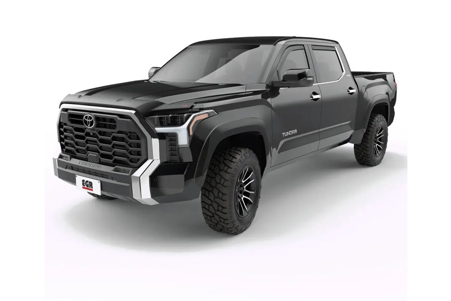 EGR’s Summit fender flares are manufactured to OEM quality and are robotically trimmed to give you the most precise fitment in the industry. These engineered flares were designed to give more coverage for oversized off-road tires. The EGR Summit flares for the Tundra provide maximum tire coverage and vehicle protection. All EGR Summit Flares feature an easy, no-drill installation process that simply attaches utilizing the factory mounting locations and provides a customizable, seamless, and stress-free install. These flares will give your vehicle a unique modern offroad appearance. With their UV protected matte finish and understated look, these fender flares are the perfect mix of style and protection.